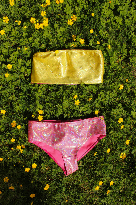Balula Reversible Bandeau Top - Golden Mirror & Peony Ember READY-TO-SHIP