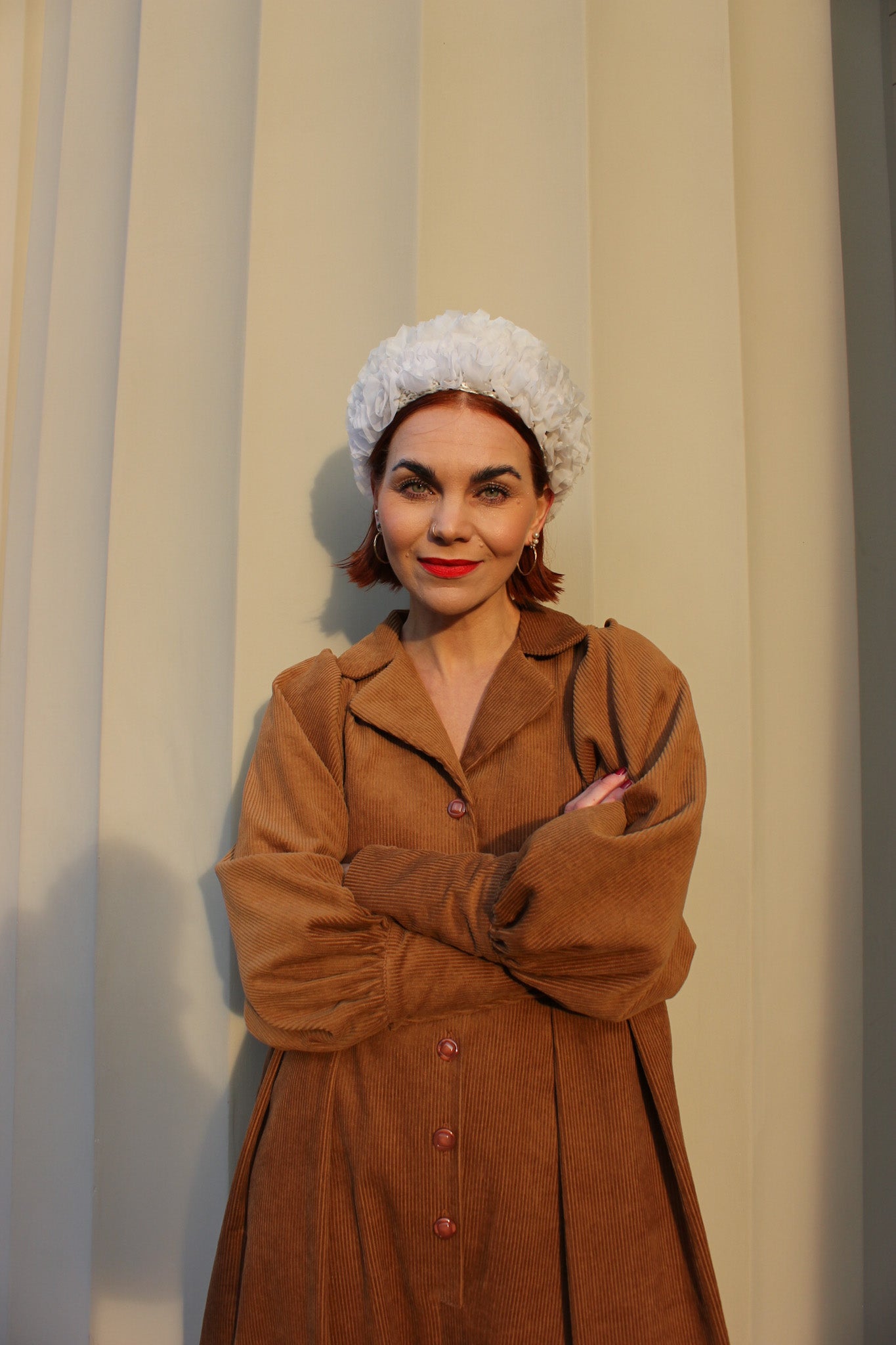 Standing gracefully on the balcony of her castle, Barbara exudes both admiration and warmth, the kind of presence that instantly makes everyone feel at home. The Barbara Jumpsuit mirrors her elegance with an oversized silhouette that drapes beautifully over the body. Its puffy sleeves with buttoned cuffs, revere collar, and buttoned front closure create a refined, timeless look, while the balloon-shaped pants and pleats from the waistline add movement and drama. A perfect balance of sophistication and comfort, this jumpsuit is designed for those who want to make a statement effortlessly.